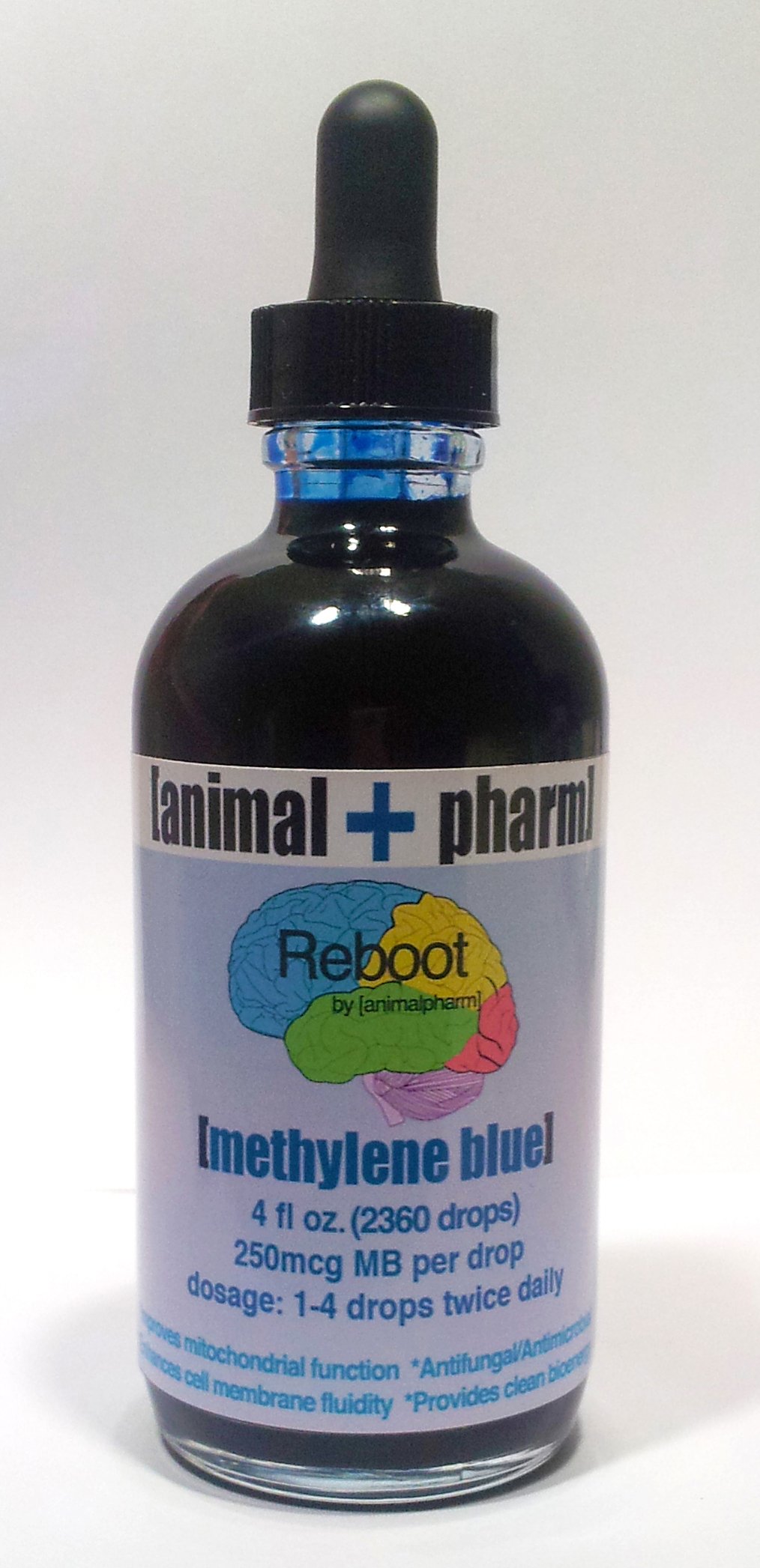 A single dose is 1-4 drops for nootropic/neuroprotective purposes 2 times daily, keeping in mind that MB's toxicity is so low at these doses that the entire bottle may be drank at one time with no negative side effects(depending on whether or not you deem blue urine/excrement a negative).